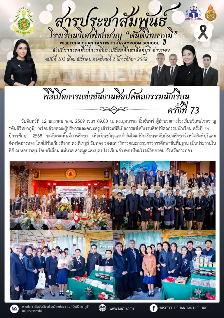 ว.ศ. เข้าร่วมพิธีเปิดการแข่งขันงานศิลปหัตถกรรมนักเรียน ครั้งที่ 7316 มกราคม 2026โดยโรงเรียนวิเศษไชยชาญ "ตันติวิทยาภูมิ"วันที่16 มกราคม 2026Read more→