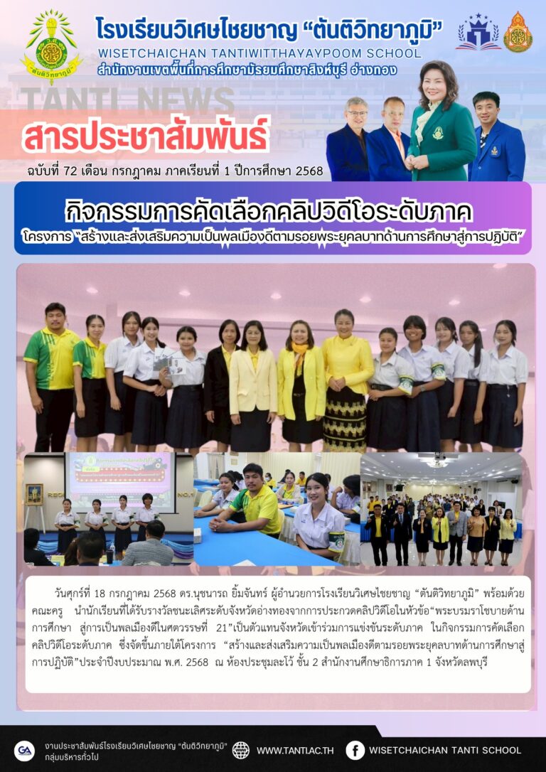 ว.ศ. เข้าร่วมการแข่งขันระดับภาค ในกิจกรรมการคัดเลือกคลิปวิดีโอ20 กรกฎาคม 2025โดยโรงเรียนวิเศษไชยชาญ "ตันติวิทยาภูมิ"วันที่20 กรกฎาคม 2025Read more→