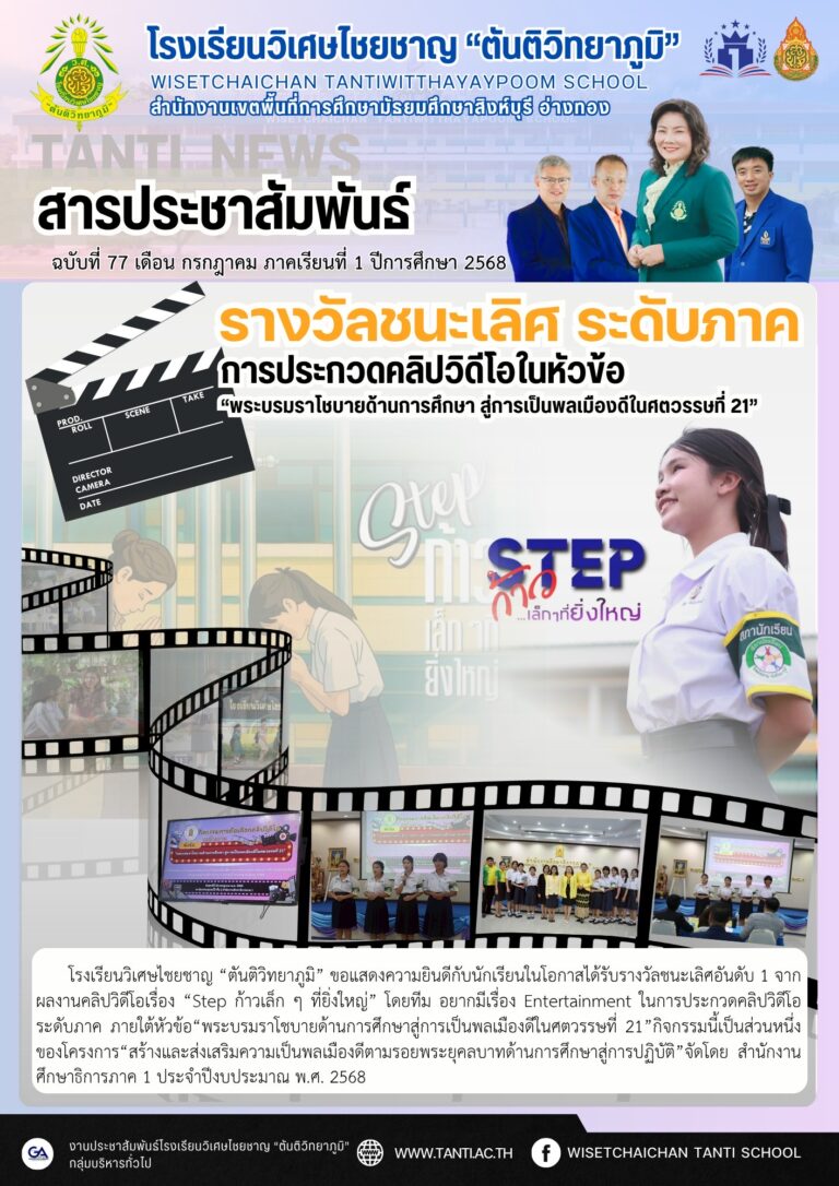 ว.ศ. ได้รับรางวัลชนะเลิศอันดับ 1 ประกวดคลิปวิดีโอระดับภาค22 กรกฎาคม 2025โดยโรงเรียนวิเศษไชยชาญ "ตันติวิทยาภูมิ"วันที่22 กรกฎาคม 2025Read more→