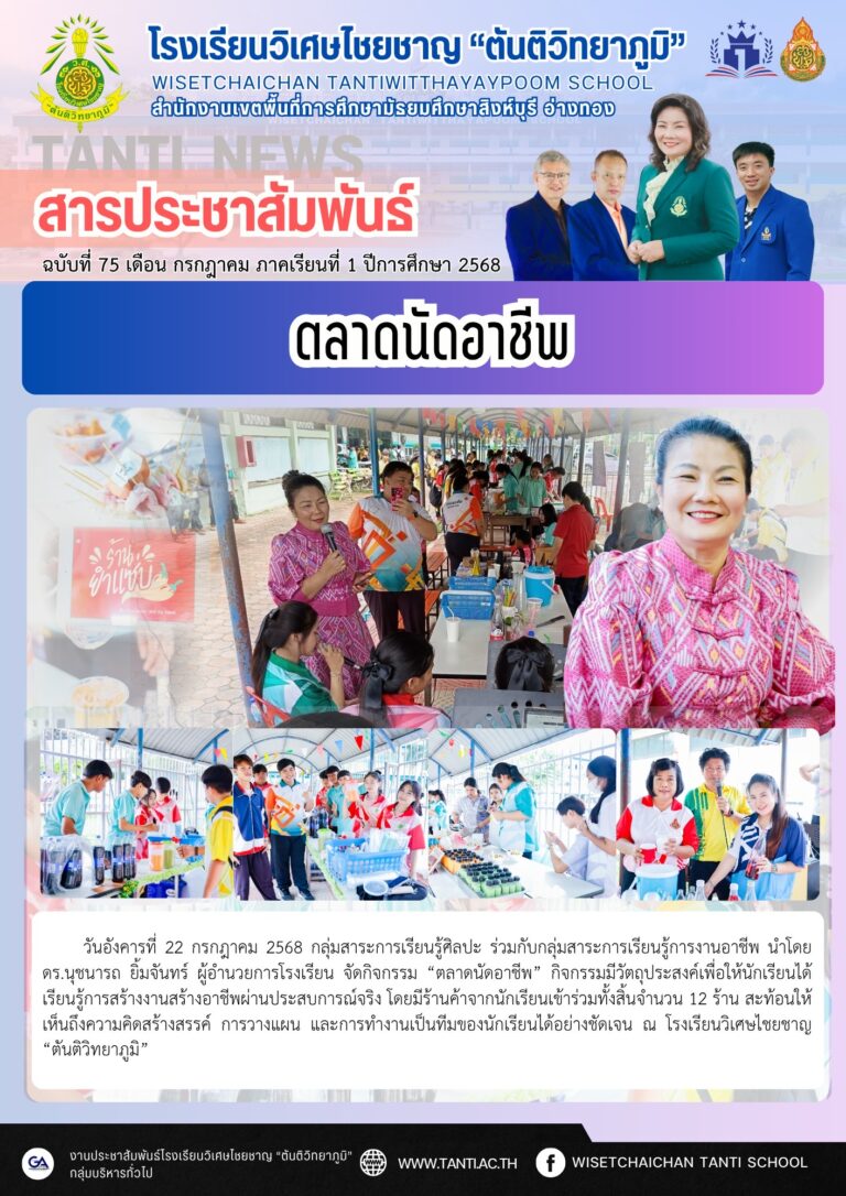 ว.ศ. จัดกิจกรรมตลาดนัดอาชีพ23 กรกฎาคม 2025โดยโรงเรียนวิเศษไชยชาญ "ตันติวิทยาภูมิ"วันที่23 กรกฎาคม 2025Read more→