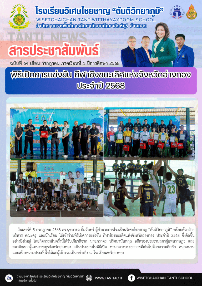 ว.ศ. เข้าร่วมพิธีเปิดการแข่งขัน กีฬาชิงชนะเลิศแห่งจังหวัดอ่างทอง9 กรกฎาคม 2025โดยโรงเรียนวิเศษไชยชาญ "ตันติวิทยาภูมิ"วันที่9 กรกฎาคม 2025Read more→