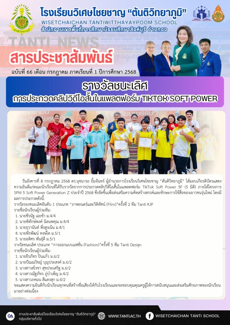 ว.ศ. มอบเกียรติบัตรแสดงความยินดีแก่คณะนักเรียนที่ได้รับรางวัลจากการประกวดคลิปวิดีโอสั้นในแพลตฟอร์ม TikTok Soft Power 5F9 กรกฎาคม 2025โดยโรงเรียนวิเศษไชยชาญ "ตันติวิทยาภูมิ"วันที่9 กรกฎาคม 2025Read more→