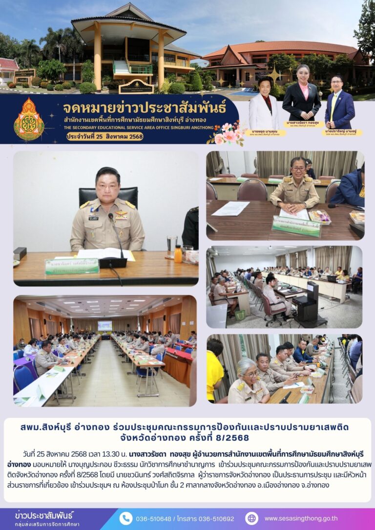 สพม.สิงห์บุรี อ่างทอง ร่วมประชุมคณะกรรมการป้องกันเเละปราบปรามยาเสพติด จังหวัดอ่างทอง ครั้งที่ 8/256826 สิงหาคม 2025โดยส่งเสริมการจัดการศึกษา สพม.สหอทวันที่26 สิงหาคม 2025Read more→