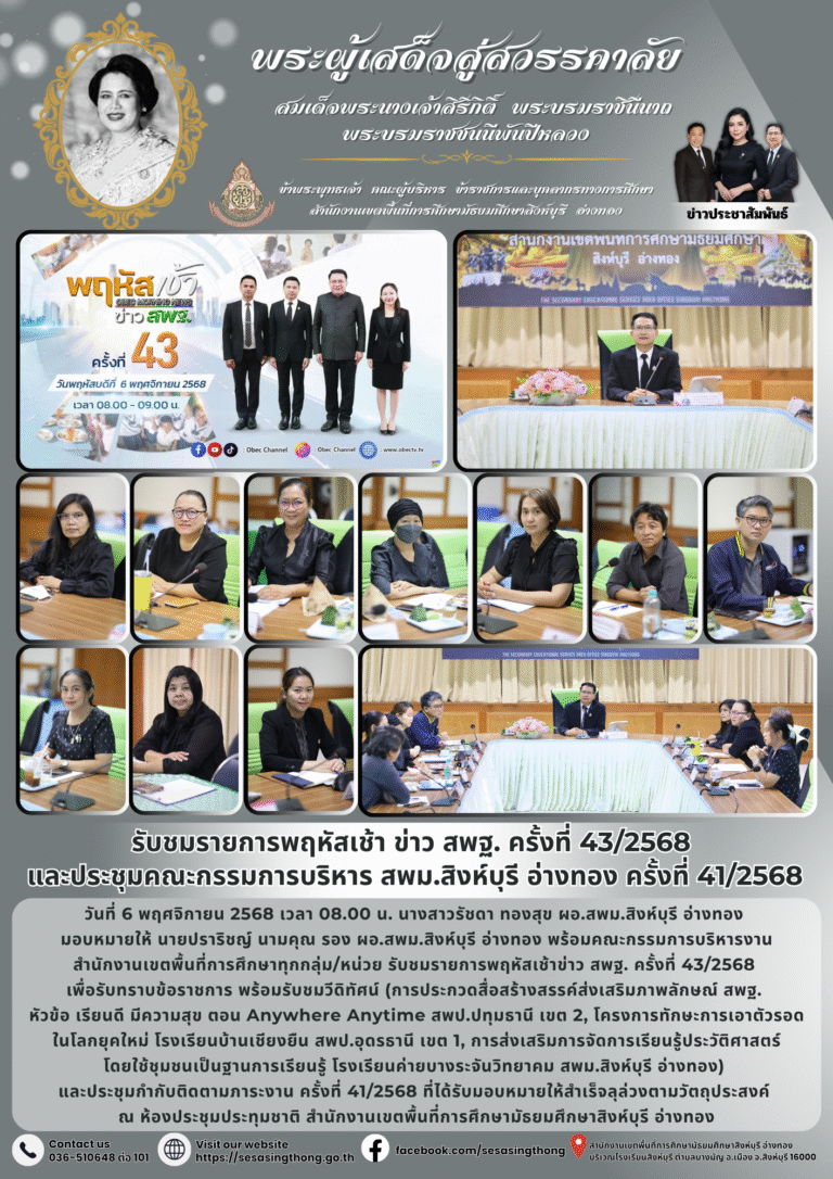 รับชมรายการพฤหัสเช้าข่าว สพฐ. ครั้งที่ 45/2568 และประชุมคณะกรรมการบริหาร สพม.สิงห์บุรี อ่างทอง ครั้งที่ 43/256820 พฤศจิกายน 2025โดยadmingameวันที่20 พฤศจิกายน 2025Read more→