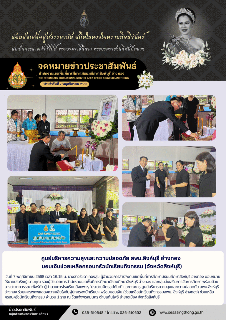 ศูนย์บริหายความสุขและความปลอดภัย สพม.สิงห์บุรี อ่างทอง มอบเงินช่วยเหลือครอบครัวนักเรียนถึงกรรม (จังหวัดสิงห์บุรี)10 พฤศจิกายน 2025โดยadmingameวันที่10 พฤศจิกายน 2025Read more→