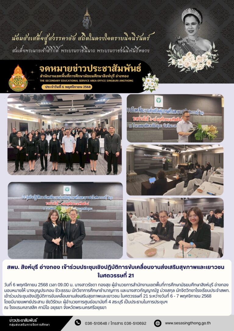 เข้าร่วมประชุมเชิงปฎิบัติการขับเคลื่อนงานส่งเสริมสุขภาพและเยาวชนในศตวรรษที่ 216 พฤศจิกายน 20256 พฤศจิกายน 2025โดยadmingameวันที่6 พฤศจิกายน 20256 พฤศจิกายน 2025Read more→