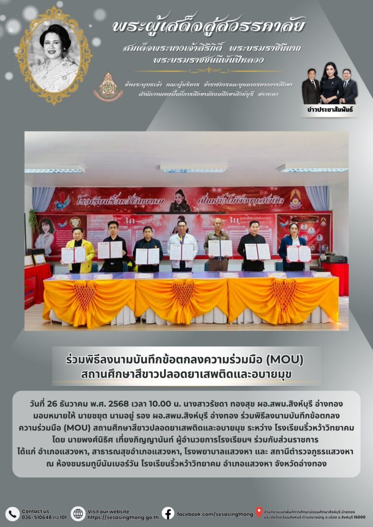 ร่วมพิธีลงนามบันทึกข้อตกลงความร่วมมือ (MOU) สถานศึกษาสีขาวปลอดยาเสพติดและอบายมุข26 ธันวาคม 202526 ธันวาคม 2025โดยประชาสัมพันธ์วันที่26 ธันวาคม 202526 ธันวาคม 2025Read more→