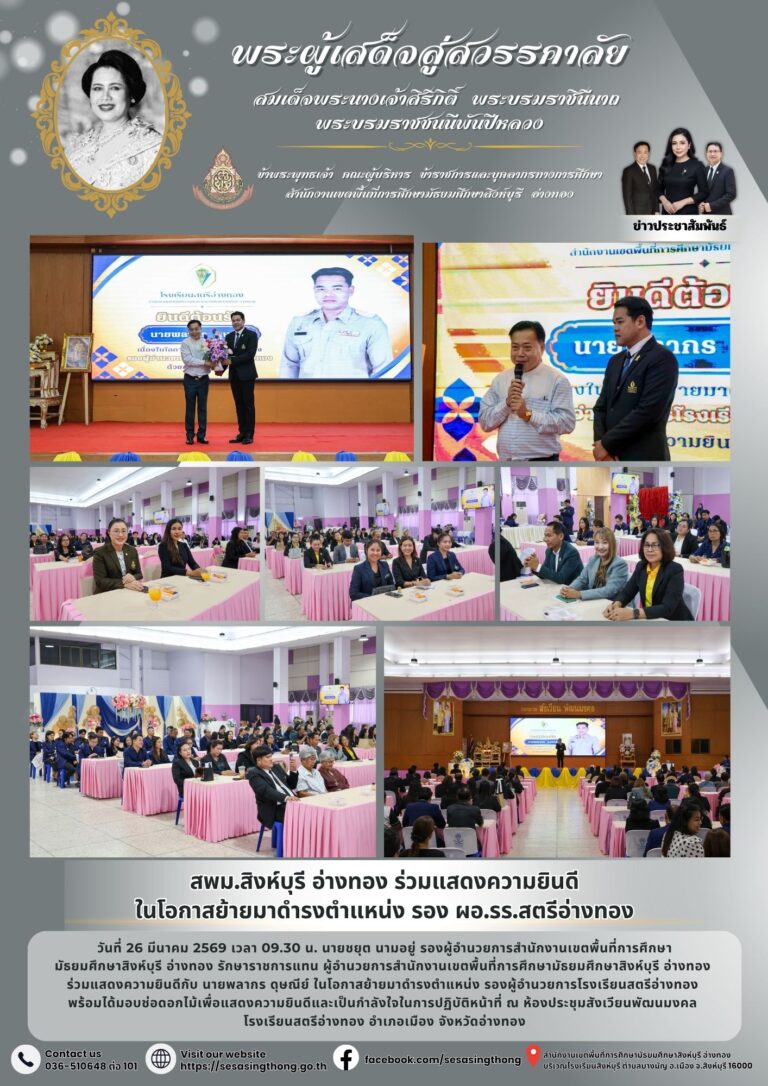สพม.สิงห์บุรี อ่างทอง ร่วมแสดงความยินดีในโอกาสย้ายมาดำรงตำแหน่ง รอง ผอ.รร.สตรีอ่างทอง26 มีนาคม 2026โดยประชาสัมพันธ์วันที่26 มีนาคม 2026Read more→