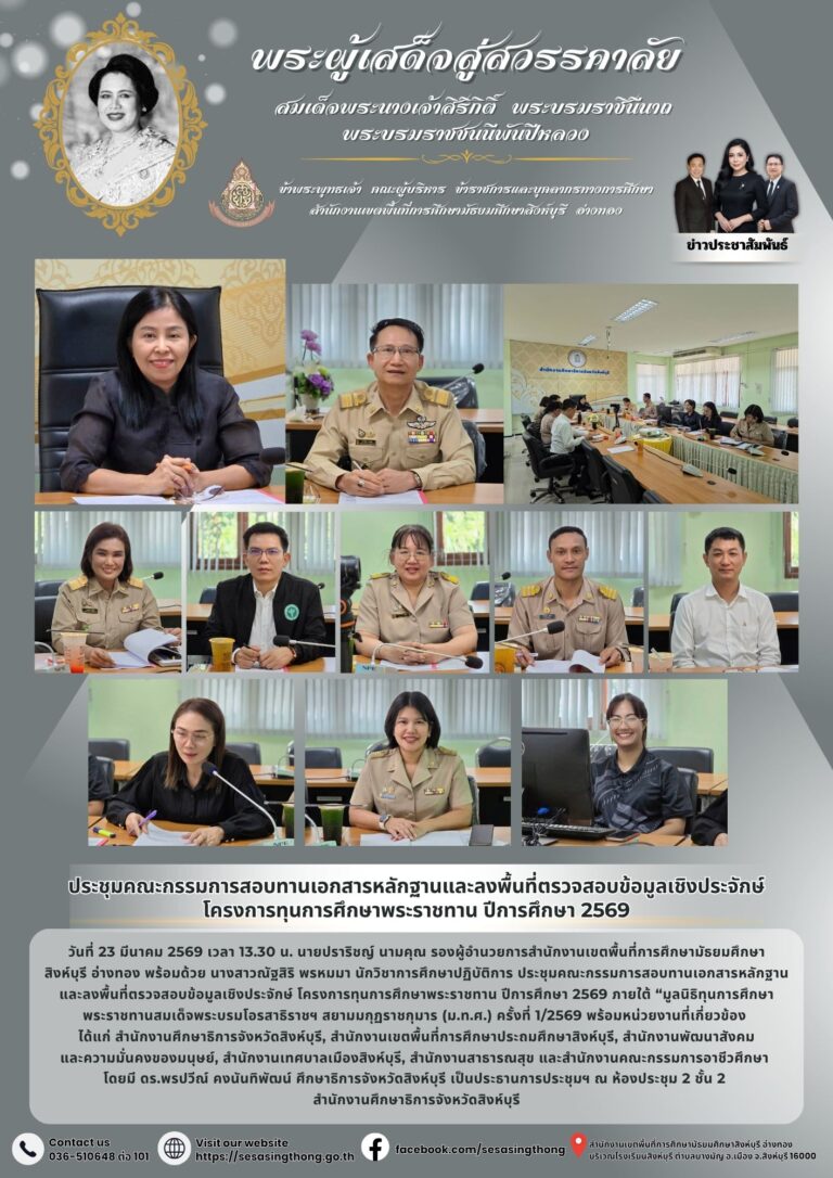 ประชุมคณะกรรมการสอบทานเอกสารหลักฐานและลงพื้นที่ตรวจสอบข้อมูลเชิงประจักษ์ โครงการทุนการศึกษาพระราชทาน ปีการศึกษา 256923 มีนาคม 2026โดยประชาสัมพันธ์วันที่23 มีนาคม 2026Read more→
