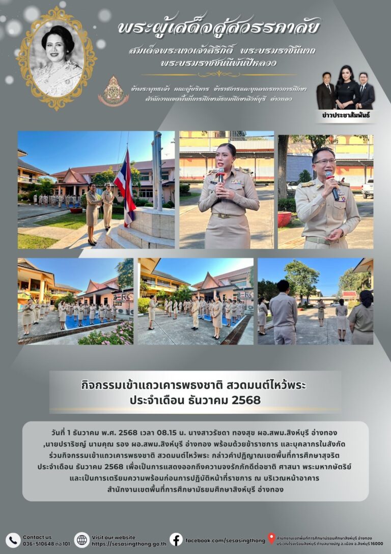 กิจกรรมเข้าแถวเคารพธงชาติ สวดมนต์ไหว้พระ ประจำเดือน ธันวาคม 25681 ธันวาคม 2025โดยประชาสัมพันธ์วันที่1 ธันวาคม 2025Read more→