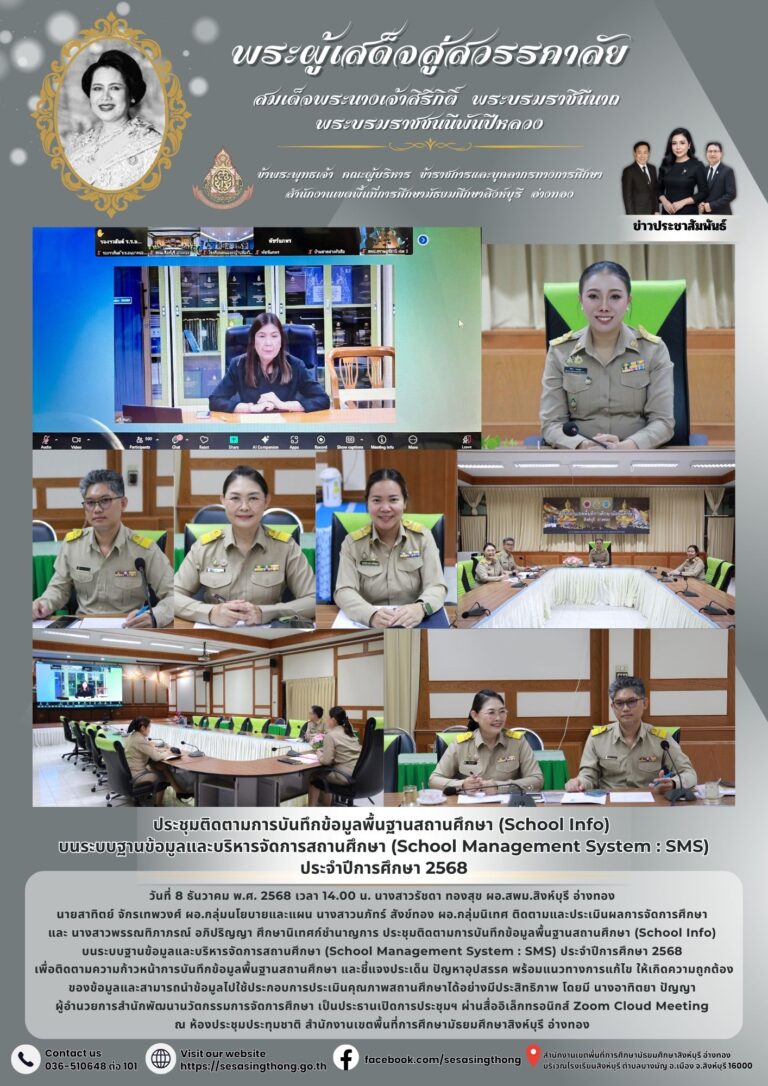ประชุมติดตามการบันทึกข้อมูลพื้นฐานสถานศึกษา (School Info) บนระบบฐานข้อมูลและบริหารจัดการสถานศึกษา (School Management System : SMS) ประจำปีการศึกษา 25688 ธันวาคม 2025โดยประชาสัมพันธ์วันที่8 ธันวาคม 2025Read more→