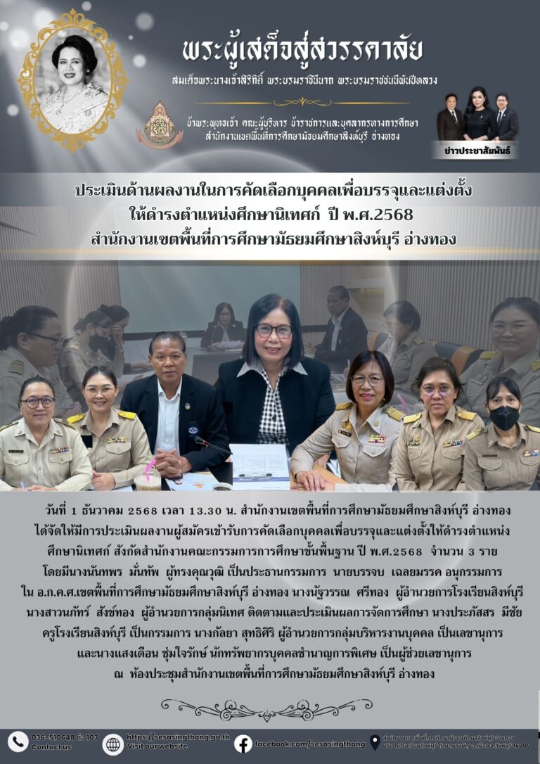 ประเมินผลงานผู้สมัครเข้ารับการคัดเลือกบุคคลเพื่อบรรจุและแต่งตั้งให้ดํารงตําแหน่งศึกษานิเทศก์1 ธันวาคม 2025โดยประชาสัมพันธ์วันที่1 ธันวาคม 2025Read more→