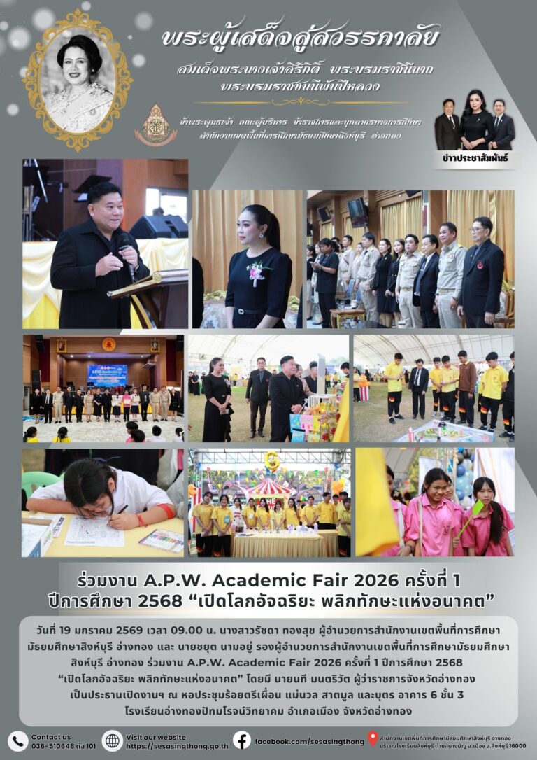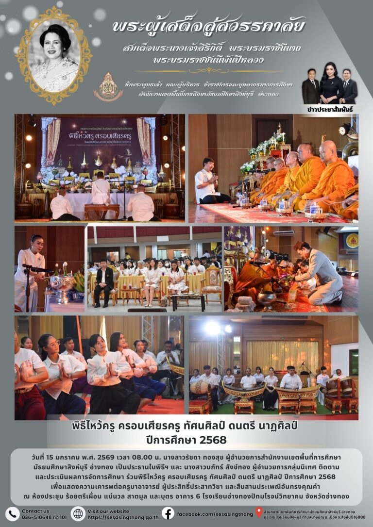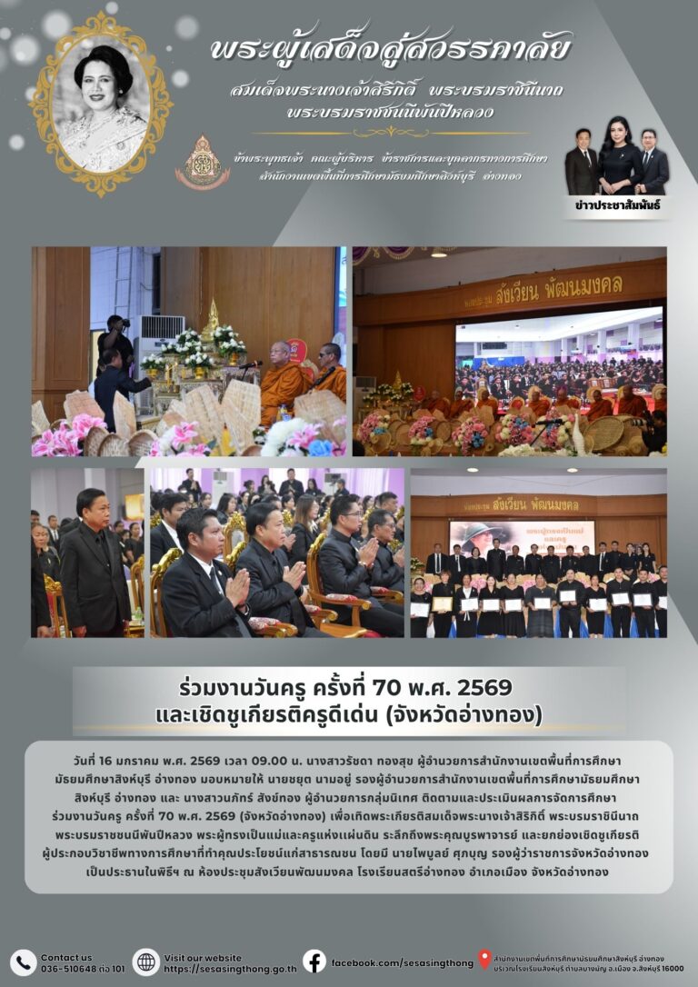 ร่วมงานวันครู ครั้งที่ 70 พ.ศ. 2569 และเชิดชูเกียรติครูดีเด่น (จังหวัดอ่างทอง)16 มกราคม 2026โดยประชาสัมพันธ์วันที่16 มกราคม 2026Read more→