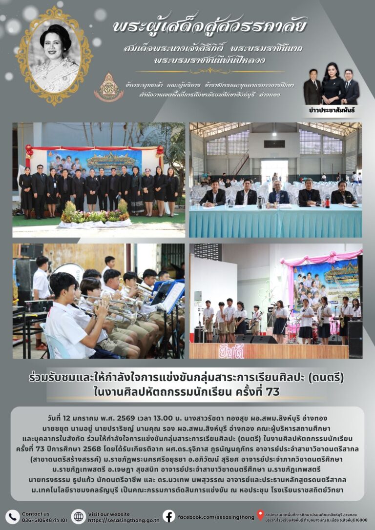 ร่วมรับชมและให้กำลังใจการแข่งขันกลุ่มสาระการเรียนศิลปะ (ดนตรี) ในงานศิลปหัตถกรรมนักเรียน ครั้งที่ 7312 มกราคม 2026โดยประชาสัมพันธ์วันที่12 มกราคม 2026Read more→