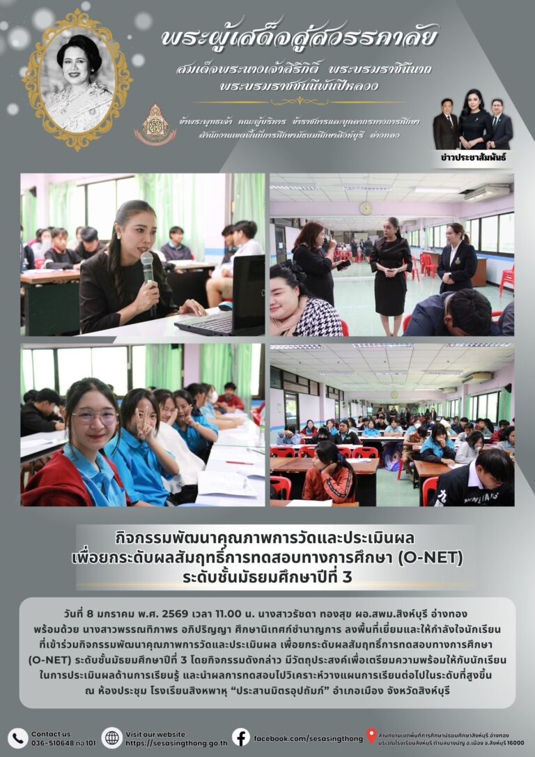 กิจกรรมพัฒนาคุณภาพการวัดและประเมินผล เพื่อยกระดับผลสัมฤทธิ์การทดสอบทางการศึกษา (O-NET) ระดับชั้นมัธยมศึกษาปีที่ 38 มกราคม 20262 กุมภาพันธ์ 2026โดยประชาสัมพันธ์วันที่8 มกราคม 20262 กุมภาพันธ์ 2026Read more→