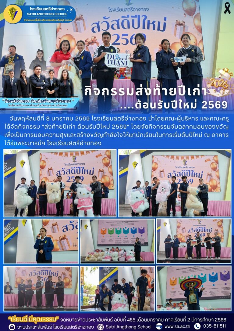 สตรีอ่างทอง จัดกิจกรรม “ส่งท้ายปีเก่า ต้อนรับปีใหม่ 2569”19 มกราคม 2026โดยโรงเรียนสตรีอ่างทองวันที่19 มกราคม 2026Read more→