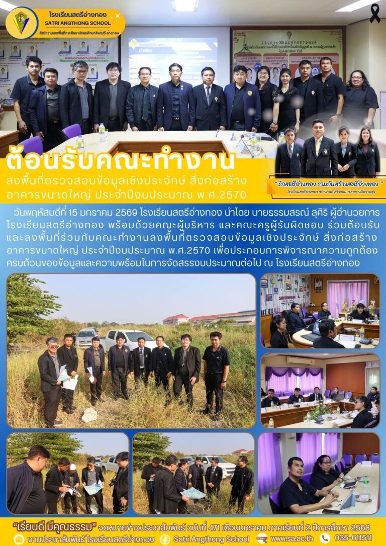 สตรีอ่างทองต้อนรับและลงพื้นที่ร่วมกับคณะทำงานลงพื้นที่ตรวจสอบข้อมูลเชิงประจักษ์ สิ่งก่อสร้าง อาคารขนาดใหญ่ ประจำปีงบประมาณ พ.ศ.257019 มกราคม 2026โดยโรงเรียนสตรีอ่างทองวันที่19 มกราคม 2026Read more→