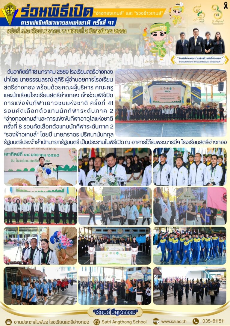 สตรีอ่างทองเข้าร่วมพิธีเปิดการแข่งขันกีฬาเยาวชนแห่งชาติ ครั้งที่ 4119 มกราคม 2026โดยโรงเรียนสตรีอ่างทองวันที่19 มกราคม 2026Read more→