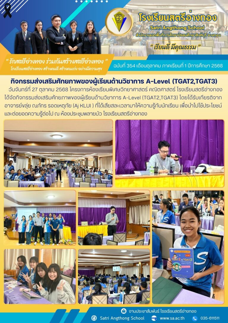 กิจกรรมส่งเสริมศักยภาพของผู้เรียนด้านวิชาการ A-Level (TGAT2,TGAT3)28 ตุลาคม 2025โดยโรงเรียนสตรีอ่างทองวันที่28 ตุลาคม 2025Read more→