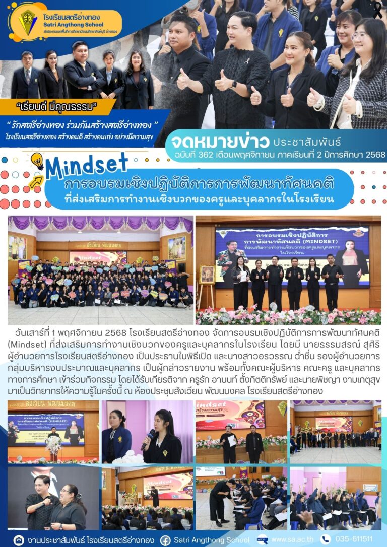 การอบรมเชิงปฏิบัติการการพัฒนาทัศนคติ (Mindset) ที่ส่งเสริมการทำงานเชิงบวกของครูและบุคลากรในโรงเรียน3 พฤศจิกายน 2025โดยโรงเรียนสตรีอ่างทองวันที่3 พฤศจิกายน 2025Read more→