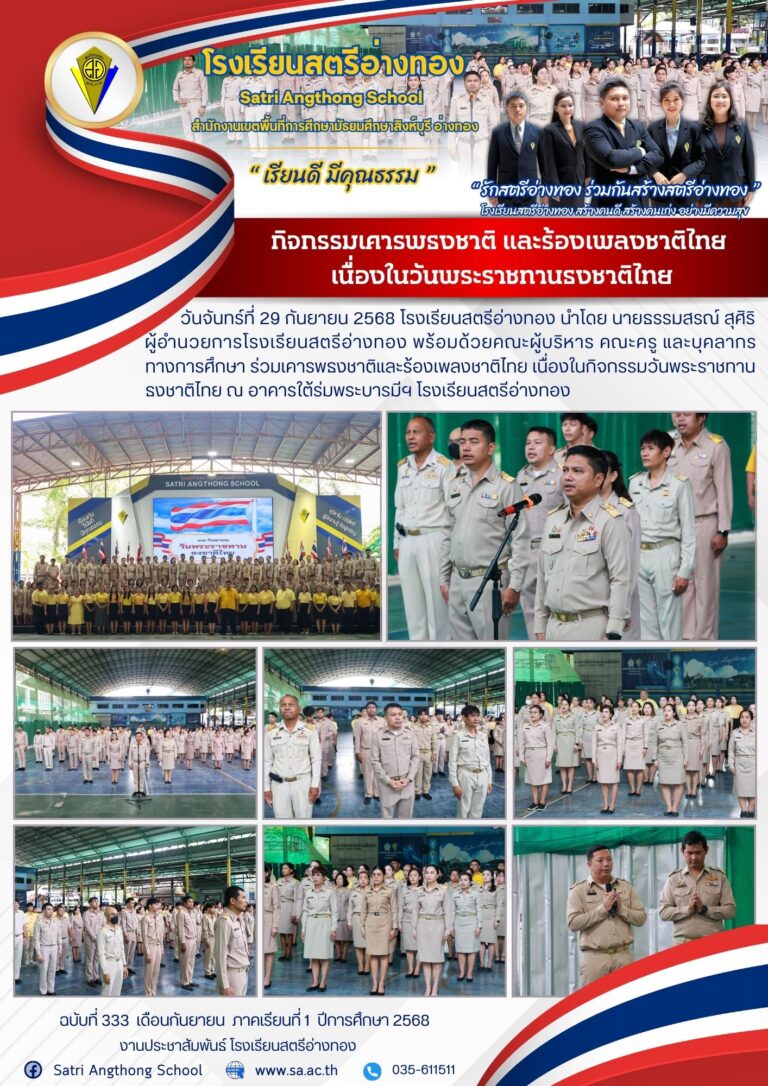 กิจกรรมเคารพธงชาติ และร้องเพลงชาติไทย เนื่องในวันพระราชทานธงชาติไทย30 กันยายน 2025โดยโรงเรียนสตรีอ่างทองวันที่30 กันยายน 2025Read more→