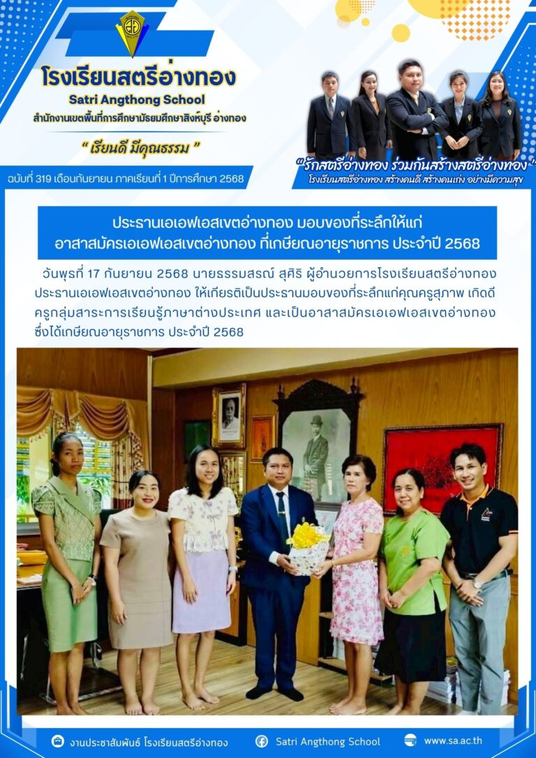 มอบของที่ระลึกให้แก่อาสาสมัครเอเอฟเอสเขตอ่างทอง ที่เกษียณอายุราชการ ประจำปี 256817 กันยายน 202517 กันยายน 2025โดยโรงเรียนสตรีอ่างทองวันที่17 กันยายน 202517 กันยายน 2025Read more→