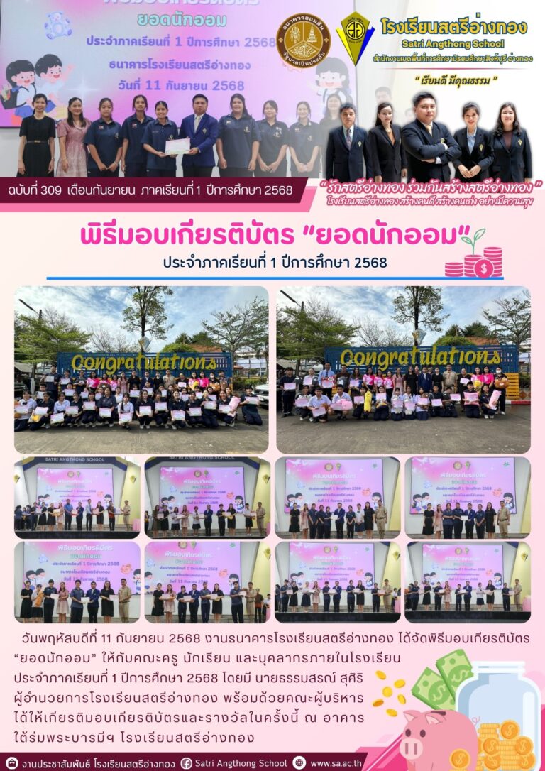 พิธีมอบเกียรติบัตร “ยอดนักออม” ประจำภาคเรียนที่ 1 ปีการศึกษา 256811 กันยายน 2025โดยโรงเรียนสตรีอ่างทองวันที่11 กันยายน 2025Read more→