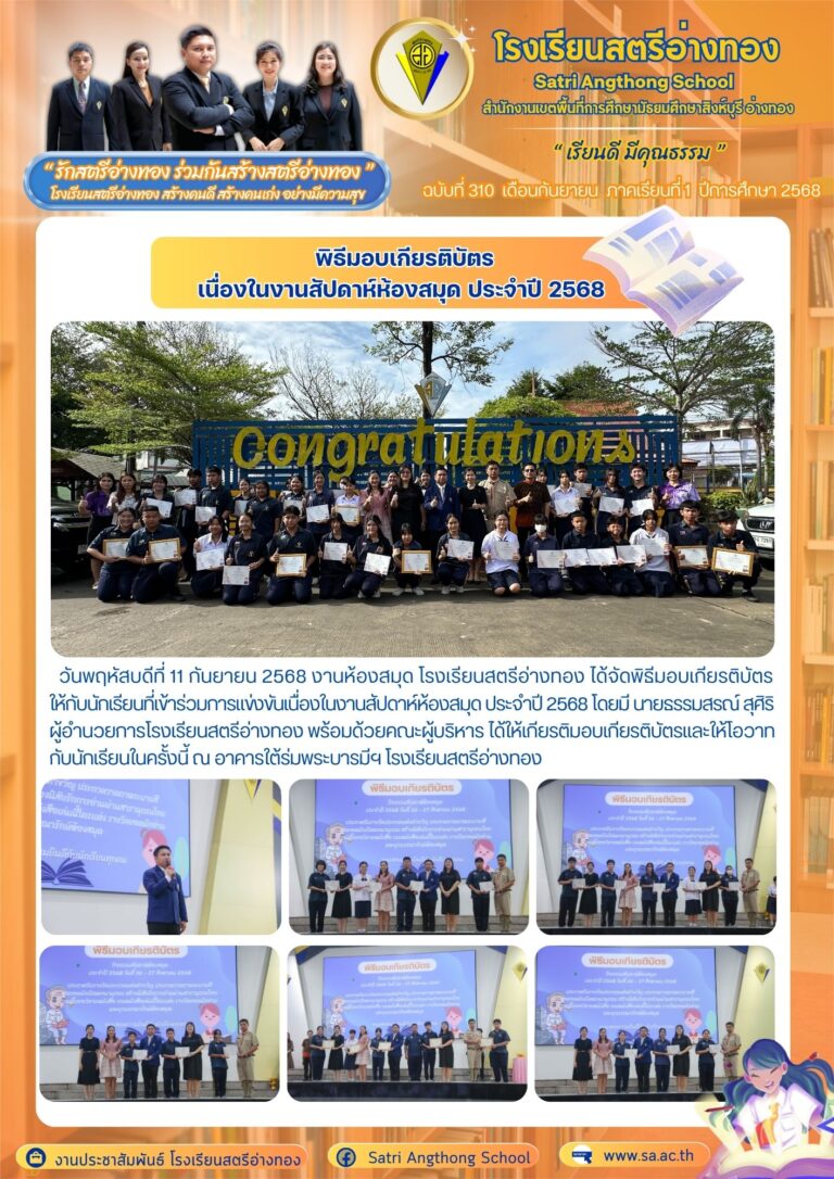 พิธีมอบเกียรติบัตร เนื่องในงานสัปดาห์ห้องสมุด ประจำปี 256811 กันยายน 2025โดยโรงเรียนสตรีอ่างทองวันที่11 กันยายน 2025Read more→