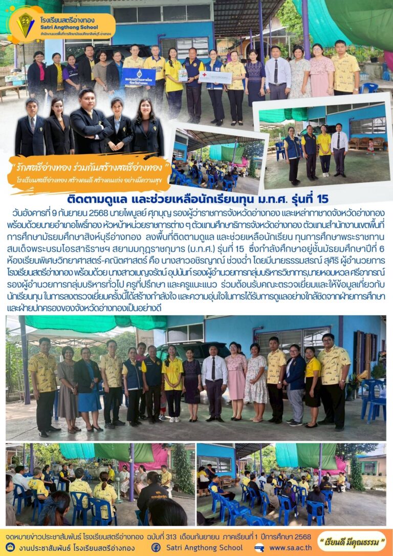 ต้อนรับคณะติดตามดูแล และช่วยเหลือนักเรียนทุน ม.ท.ศ. รุ่นที่ 1515 กันยายน 2025โดยโรงเรียนสตรีอ่างทองวันที่15 กันยายน 2025Read more→
