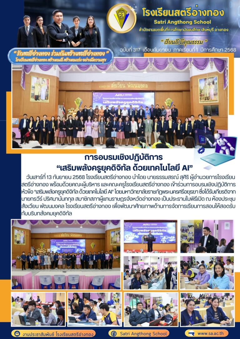 การอบรมเชิงปฏิบัติการ “เสริมพลังครูยุคดิจิทัล ด้วยเทคโนโลยี AI”15 กันยายน 2025โดยโรงเรียนสตรีอ่างทองวันที่15 กันยายน 2025Read more→