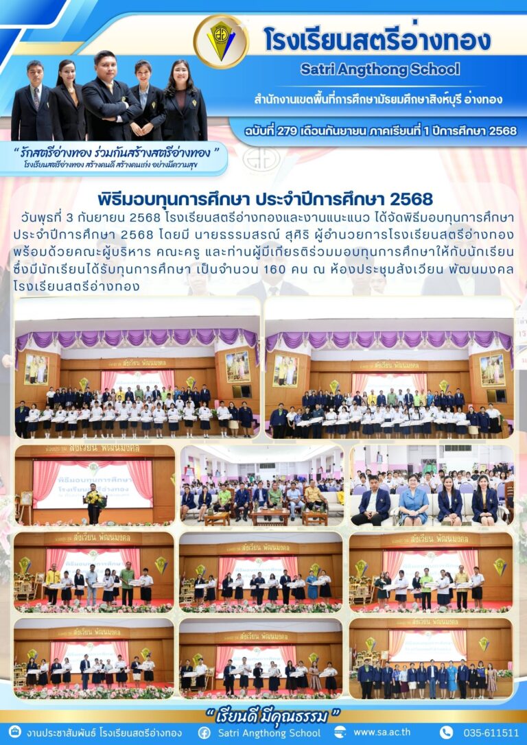 พิธีมอบทุนการศึกษา ประจำปีการศึกษา 25684 กันยายน 2025โดยโรงเรียนสตรีอ่างทองวันที่4 กันยายน 2025Read more→