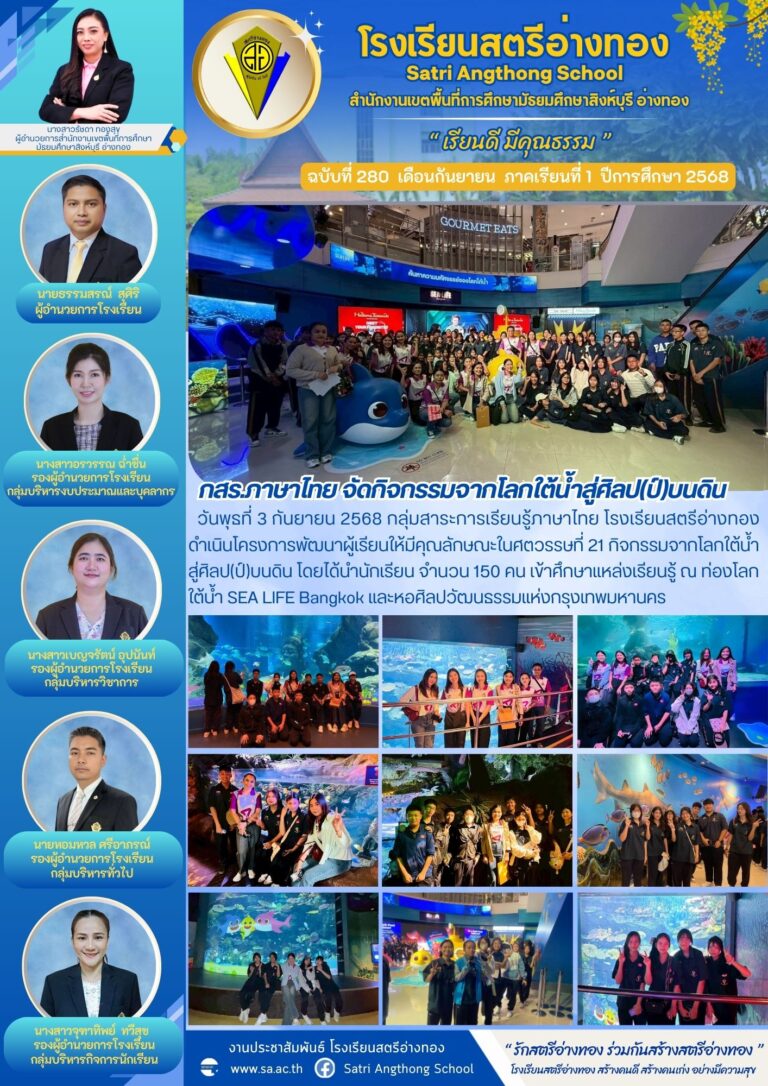 กสร.ภาษาไทย จัดกิจกรรมจากโลกใต้น้ำสู่ศิลป(ป์)บนดิน4 กันยายน 2025โดยโรงเรียนสตรีอ่างทองวันที่4 กันยายน 2025Read more→