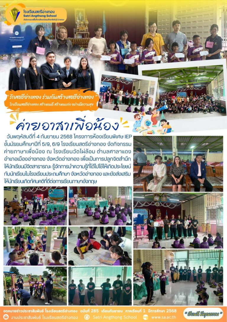 โครงการห้องเรียนพิเศษ IEP จัดค่ายอาสาเพื่อน้อง8 กันยายน 2025โดยโรงเรียนสตรีอ่างทองวันที่8 กันยายน 2025Read more→