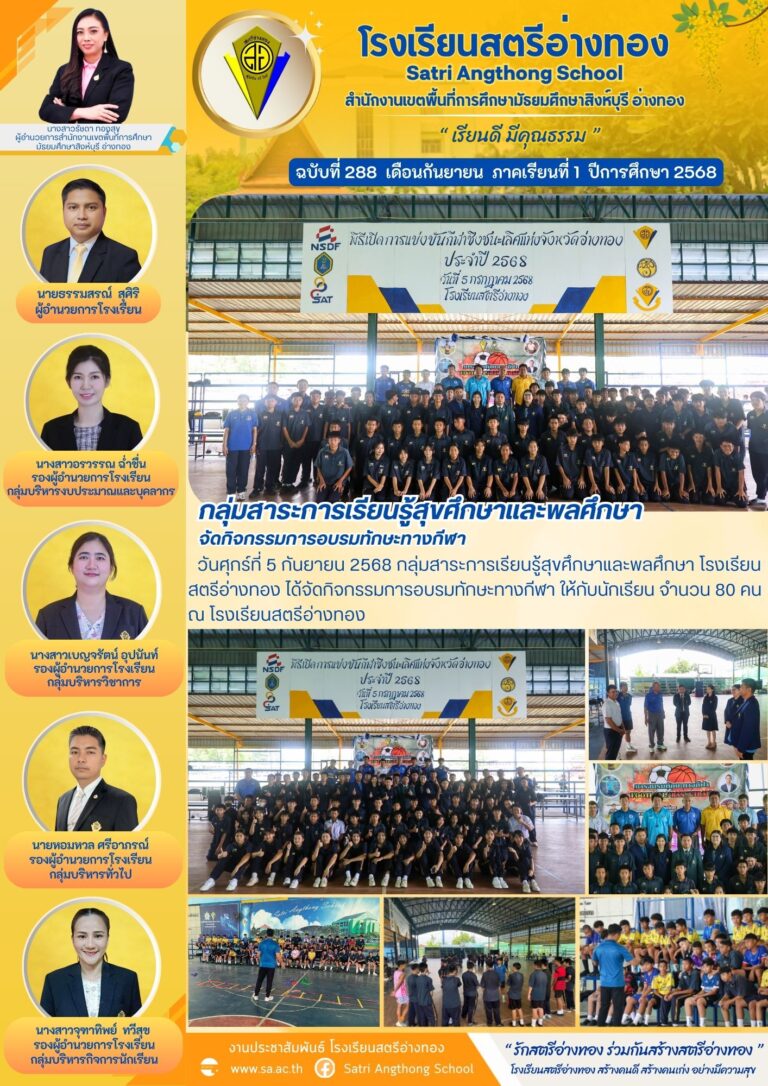 กสร.สังคมศึกษาฯ นำนักเรียนเข้าร่วมการแข่งขันตอบคำถามจากการใช้หลักสูตรต้านทุจริตศึกษา ฯ และได้รับรางวัลชนะเลิศลำดับที่ 15 กันยายน 2025โดยโรงเรียนสตรีอ่างทองวันที่5 กันยายน 2025Read more→