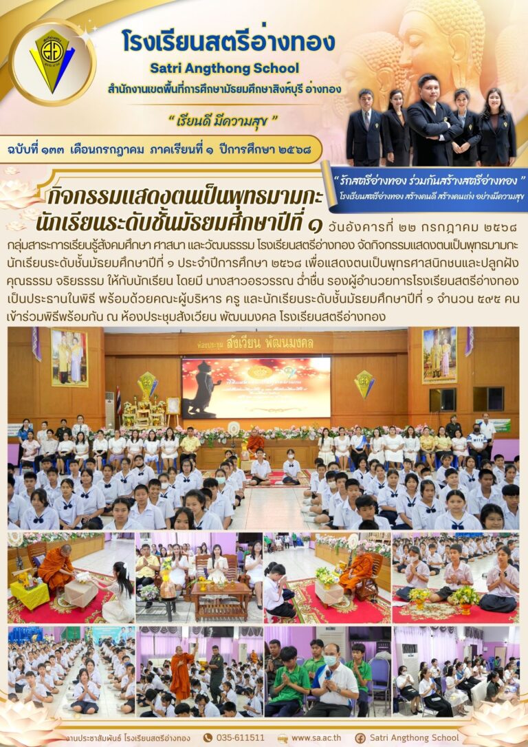 กิจกรรมแสดงตนเป็นพุทธมามกะ นักเรียนระดับชั้นมัธยมศึกษาปีที่ 123 กรกฎาคม 2025โดยโรงเรียนสตรีอ่างทองวันที่23 กรกฎาคม 2025Read more→