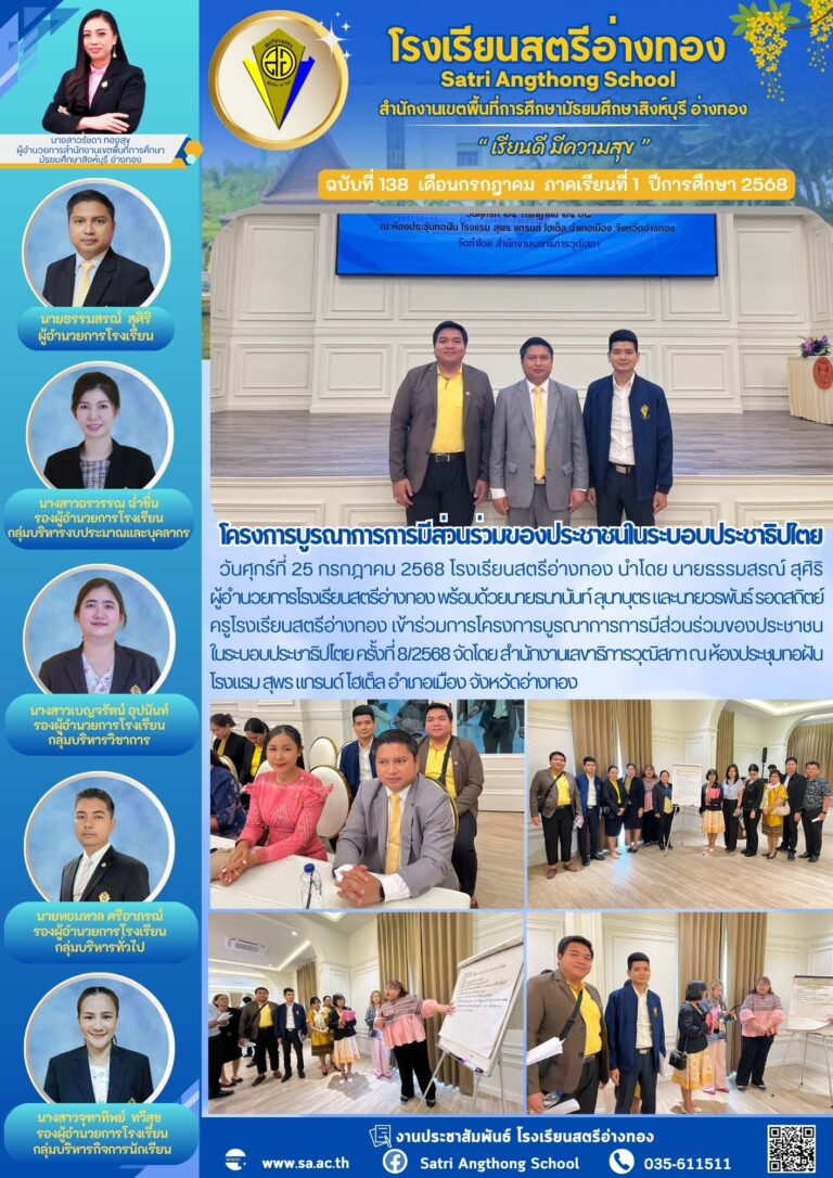โครงการบูรณาการการมีส่วนร่วมของประชาชนในระบอบประชาธิปไตย25 กรกฎาคม 2025โดยโรงเรียนสตรีอ่างทองวันที่25 กรกฎาคม 2025Read more→