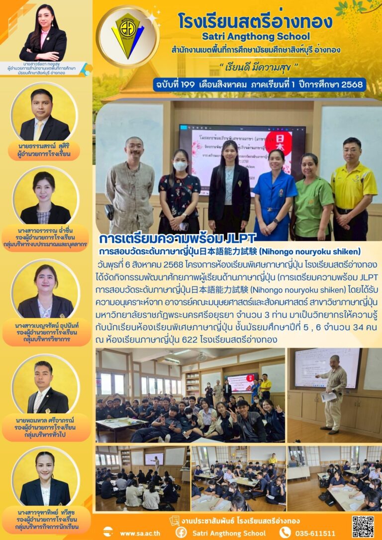 โครงการห้องเรียนพิเศษภาษาญี่ปุ่น นำนักเรียนเข้าร่วมกิจกรรมส่งเสริมทักษะวิชาการภาษาญี่ปุ่น (ค่ายภาษาและวัฒนธรรมญี่ปุ่น)14 สิงหาคม 2025โดยโรงเรียนสตรีอ่างทองวันที่14 สิงหาคม 2025Read more→