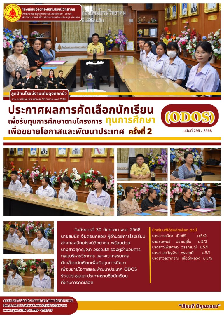 อ.ป.ว. ประกาศผลการคัดเลือกนักเรียนเพื่อรับทุนการศึกษาตามโครงการ (ODOS)2 ตุลาคม 2025โดยโรงเรียนอ่างทองปัทมโรจน์วิทยาคมวันที่2 ตุลาคม 2025Read more→