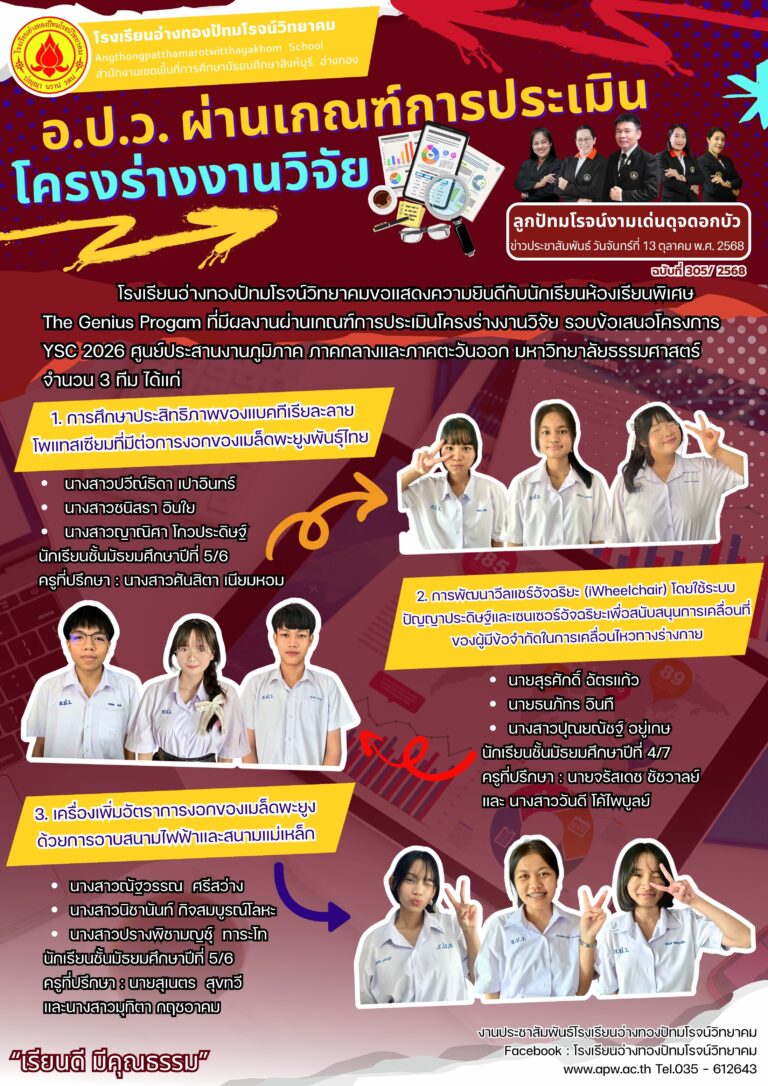 อ.ป.ว. ผ่านเกณฑ์การประเมินโครงร่างงานวิจัย14 ตุลาคม 2025โดยโรงเรียนอ่างทองปัทมโรจน์วิทยาคมวันที่14 ตุลาคม 2025Read more→