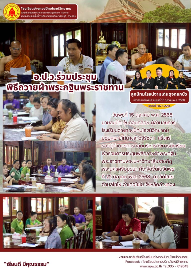 อ.ป.ว.ร่วมประชุม พิธีถวายผ้าพระกฐินพระราชทาน15 ตุลาคม 2025โดยโรงเรียนอ่างทองปัทมโรจน์วิทยาคมวันที่15 ตุลาคม 2025Read more→