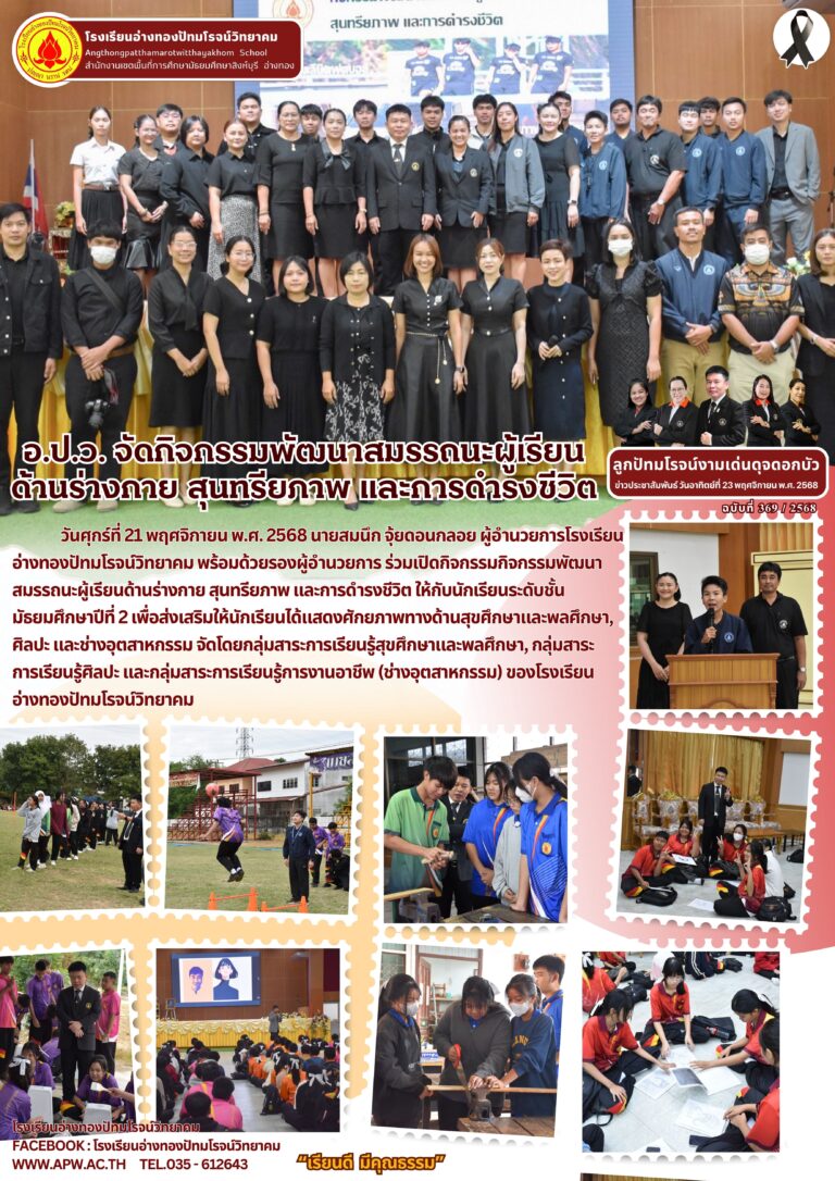 อ.ป.ว. จัดกิจกรรมพัฒนาสมรรถนะผู้เรียน ด้านร่างกาย สุนทรียภาพ และการดำรงชีวิต24 พฤศจิกายน 2025โดยโรงเรียนอ่างทองปัทมโรจน์วิทยาคมวันที่24 พฤศจิกายน 2025Read more→