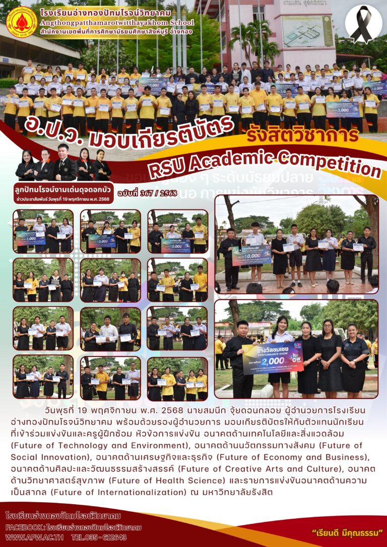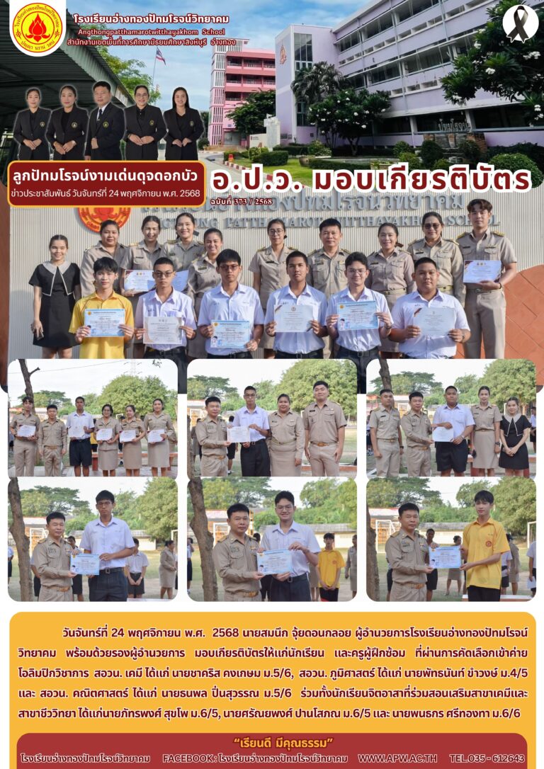 อ.ป.ว. มอบเกียรติบัตร24 พฤศจิกายน 2025โดยโรงเรียนอ่างทองปัทมโรจน์วิทยาคมวันที่24 พฤศจิกายน 2025Read more→