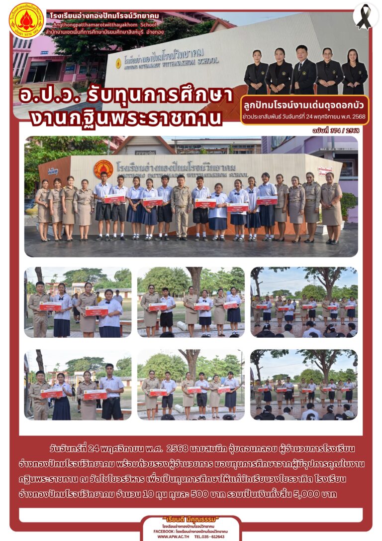 อ.ป.ว. รับทุนการศึกษา งานกฐินพระราชทาน24 พฤศจิกายน 2025โดยโรงเรียนอ่างทองปัทมโรจน์วิทยาคมวันที่24 พฤศจิกายน 2025Read more→