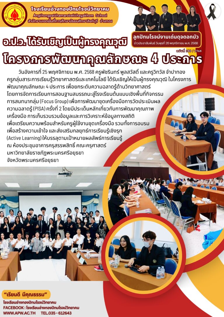 อ.ป.ว. ได้รับเชิญเป็นผู้ทรงคุณวุฒิโครงการพัฒนาคุณลักษณะ 4 ประการ26 พฤศจิกายน 2025โดยโรงเรียนอ่างทองปัทมโรจน์วิทยาคมวันที่26 พฤศจิกายน 2025Read more→