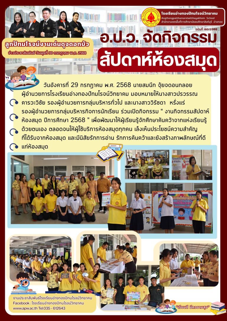 อ.ป.ว. จัดกิจกรรมสัปดาห์ห้องสมุด30 กรกฎาคม 2025โดยโรงเรียนอ่างทองปัทมโรจน์วิทยาคมวันที่30 กรกฎาคม 2025Read more→