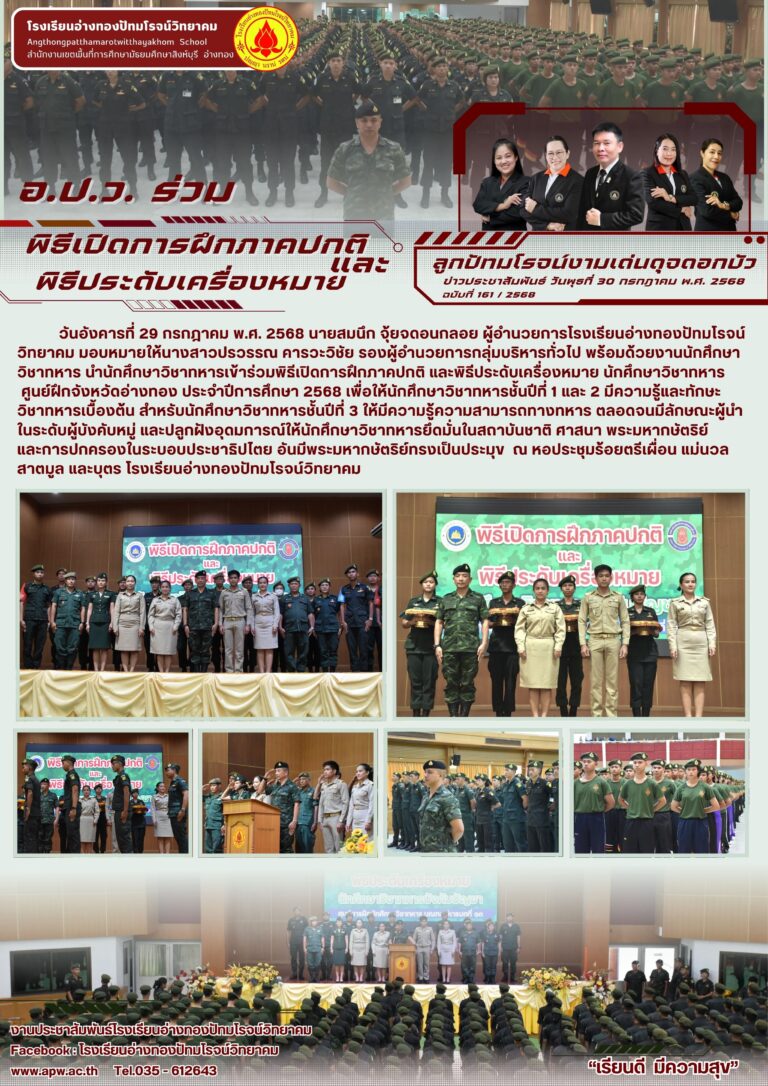 อ.ป.ว. ร่วมพิธีเปิดการฝึกภาคปกติและพิธีประดับเครื่องหมาย30 กรกฎาคม 2025โดยโรงเรียนอ่างทองปัทมโรจน์วิทยาคมวันที่30 กรกฎาคม 2025Read more→