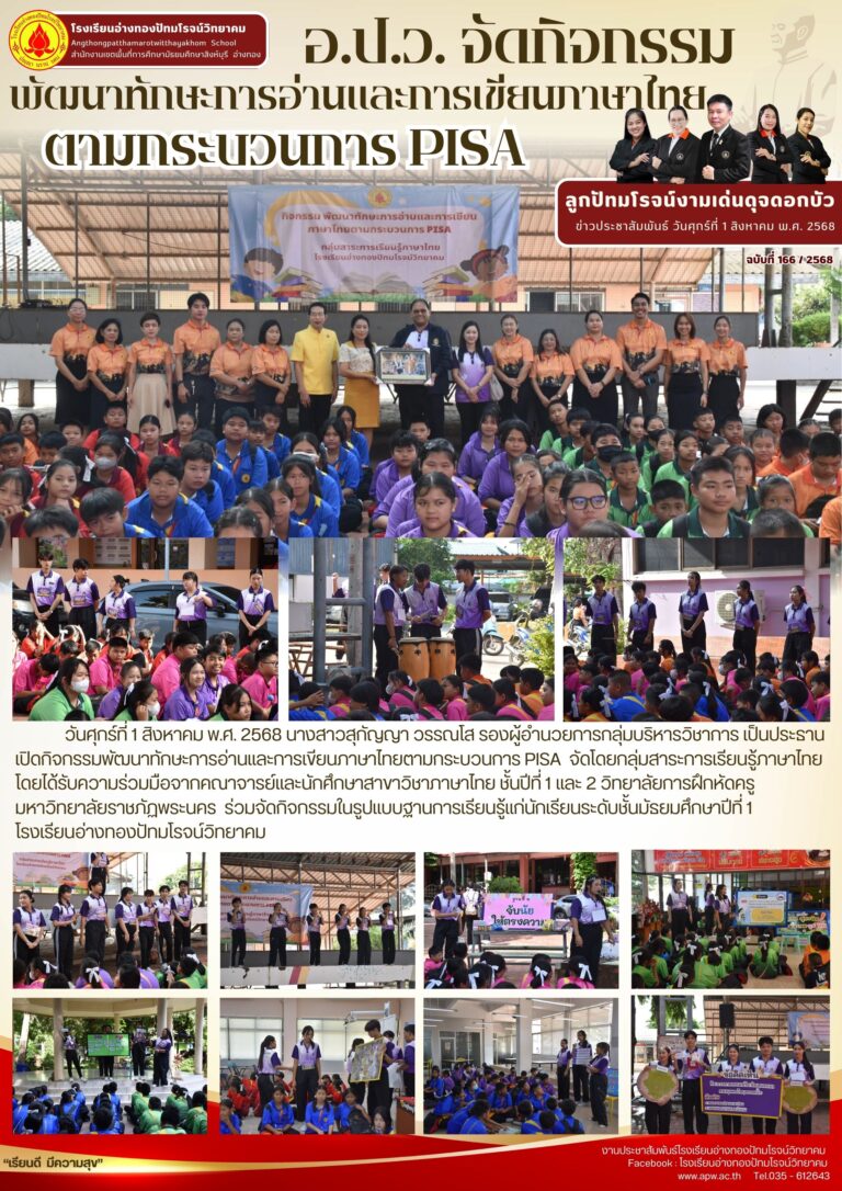 อ.ป.ว. กิจกรรมพัฒนาทักษะการอ่านและการเขียนภาษาไทยตามกระบวนการ PISA13 สิงหาคม 2025โดยโรงเรียนอ่างทองปัทมโรจน์วิทยาคมวันที่13 สิงหาคม 2025Read more→