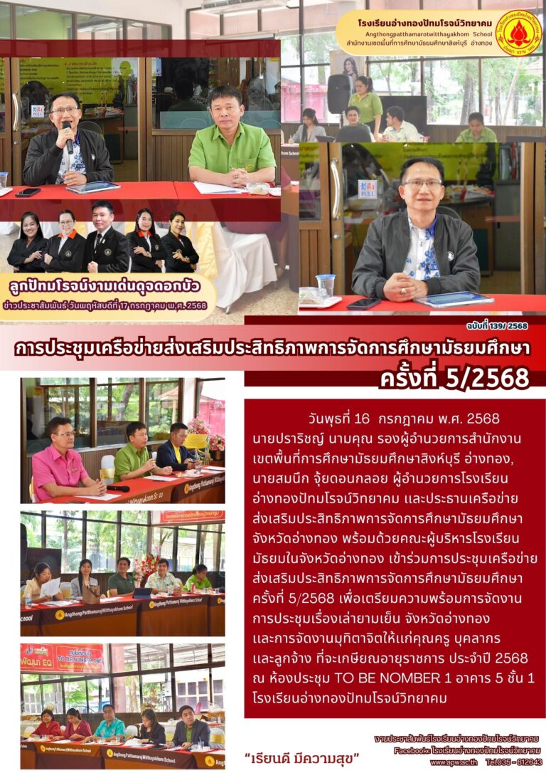 อ.ป.ว. ร่วมประชุมเครือข่ายส่งเสริมประสิทธิภาพการจัดการศึกษามัธยมศึกษา ครั้งที่ 5/256817 กรกฎาคม 2025โดยโรงเรียนอ่างทองปัทมโรจน์วิทยาคมวันที่17 กรกฎาคม 2025Read more→