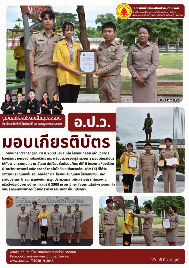 อ.ป.ว. มอบเกียรติบัตร21 กรกฎาคม 2025โดยโรงเรียนอ่างทองปัทมโรจน์วิทยาคมวันที่21 กรกฎาคม 2025Read more→