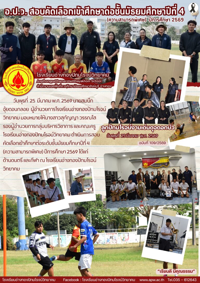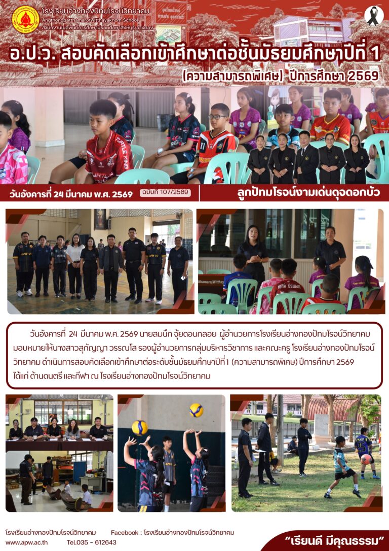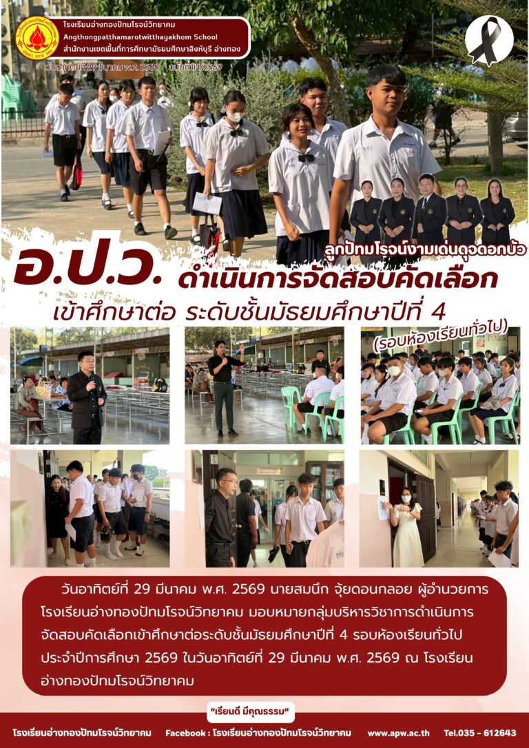 อ.ป.ว. ดำเนินการดำเนินการจัดสอบคัดเลือกเข้าศึกษาต่อ ระดับชั้นมัธยมศึกษาปีที่ 1 ห้องเรียนทั่วไป2 เมษายน 2026โดยโรงเรียนอ่างทองปัทมโรจน์วิทยาคมวันที่2 เมษายน 2026Read more→
